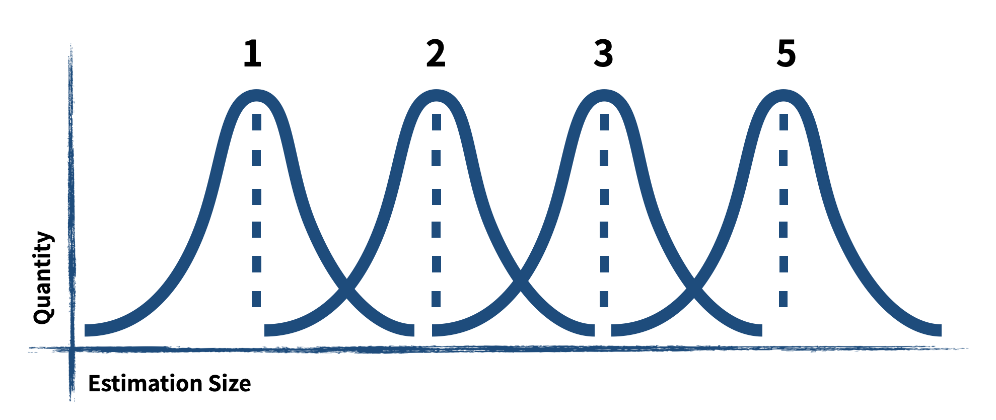 The estimation process only uses the numbers 1, 2, 3, 5, and 8, helping to level granularity of the requirements. Requirements smaller than 1 should be merged to provide an estimate, while requirements estimated at 8 should be split.